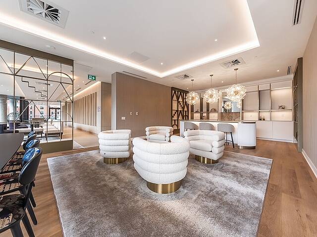 4th Floor: -Landscaped terrace with heated outdoor pool -3,000 sq ft urban chalet with a gas fireplace and bar area -Game lounge with pool table, poker, and more