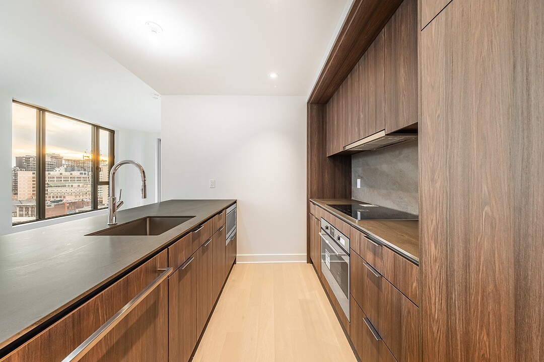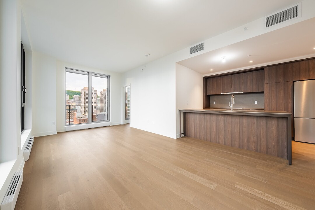 *Promotions: A guaranteed 3% interest rate from the developer - *Conditions apply. This modern condo is located in the heart of downtown Montreal and features 3 bedrooms, 2 bathrooms, and an open living space. Enjoy breathtaking views of the city through its generous windows. The Gatsby Condos, a new project with refined design, invites you to explore contemporary living. Inspired by the Roaring Twenties, the building's architecture reflects a unique and elegant style. Experience this exceptional urban living environment.