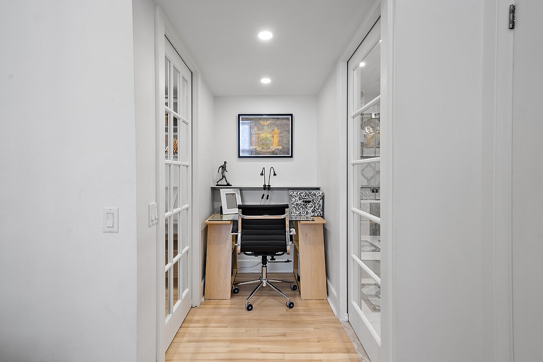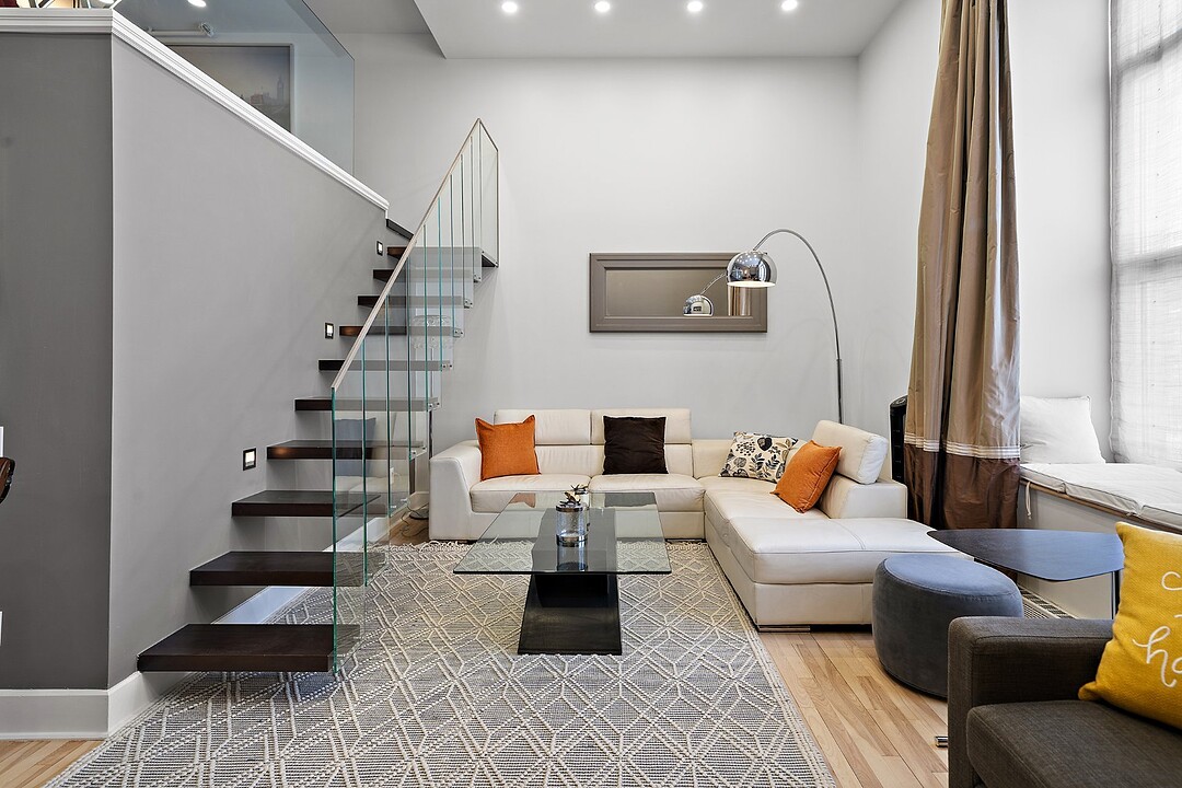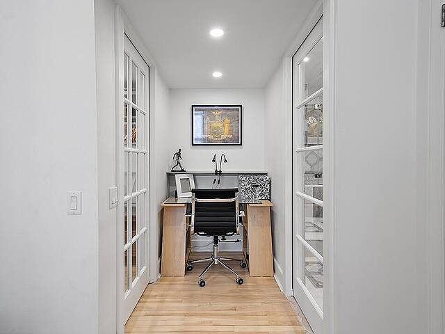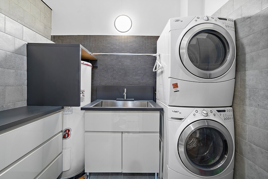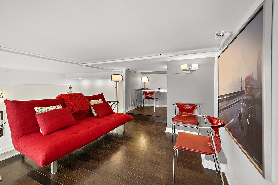 - A modern and functional kitchen - Cozy living and dining areas - A mezzanine overlooking the living and dining areas - Primary bedroom with a mezzanine, en suite bathroom, and walk-in closet - Second generously sized bedroom with double closets - Contemporary second bathroom - A convenient powder room - Expansive windows allowing for abundant natural light - High ceilings for enhanced airflow and a spacious feel - Two contemporary staircases--one in the main living area and one in the primary bedroom--adding an elegant architectural touch throughout the condo - Laundry room with storage and utility sink - One indoor parking space and a storage locker