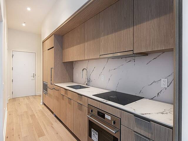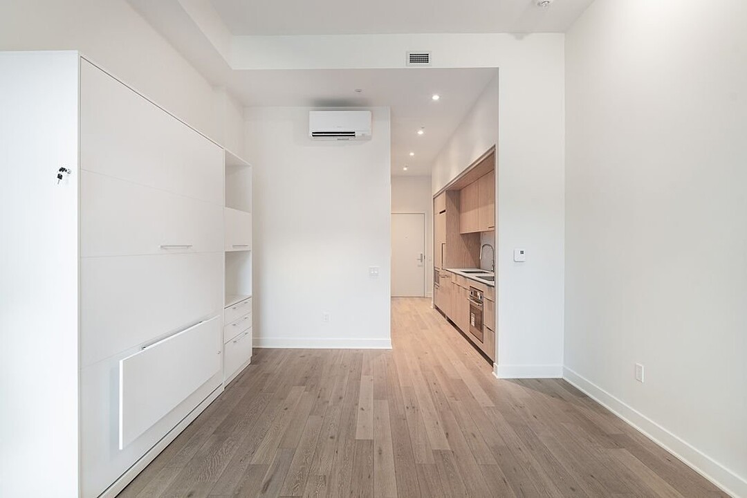 ADJUSTED PRICE - Modern loft-style condo located in the heart of downtown Montreal, with 10 feet high ceiling, featuring a living/bedroom area, a kitchen, a bathroom, and a walk-in for storage. Perfect for professionals or students. The Gatsby Condos, a new project with a refined design, offers a contemporary layout. Inspired by the Roaring Twenties, the building's architecture reflects a unique and sophisticated style. Residents enjoy premium amenities, including a pool and fitness room. Refinement at the heart of Montréal living.