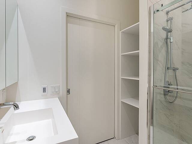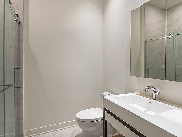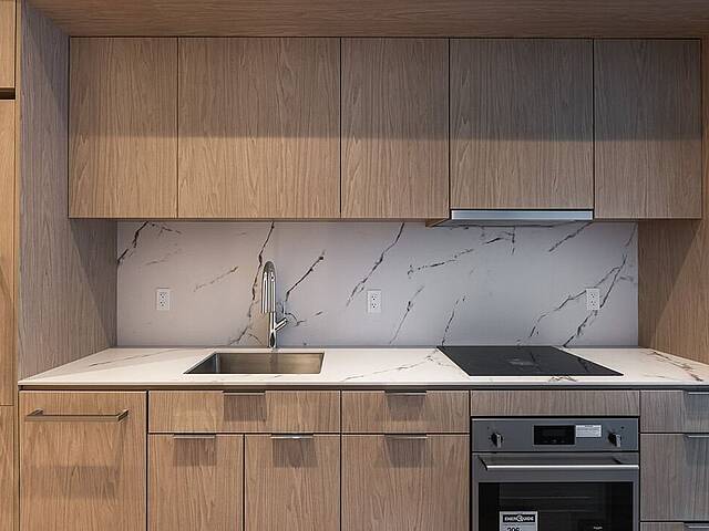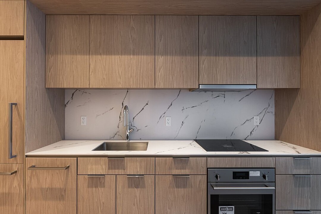 Units: -Porcelain, Dekton, or quartz countertops and backsplash -9-foot ceiling height, primarily in living spaces -Quality acoustic soundproofing -Double-energy glazed windows with sealed units, low-e, and argon -Air exchanger included in each unit -Concealed air conditioning with roof condensers for 1 to 3-bedroom units -Architectural electric baseboard heating connected to digital thermostat -Pre-wiring for telephone, cable, and internet -Included lighting fixtures: recessed in the kitchen, entrance hall and bathrooms; functional lighting for laundry rooms and walk-ins -Gypsum-covered concrete columns -Condo delivered with 2 coats of white paint -Private balconies with glass railings for most units -Secure lock with Medeco key