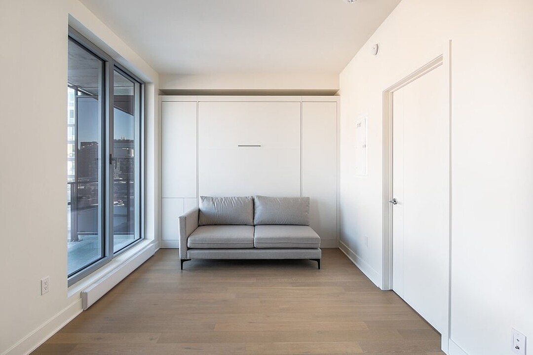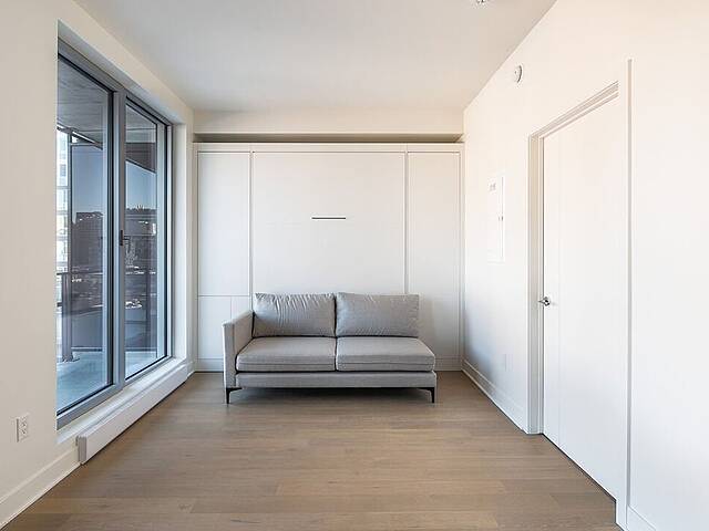ADJUSTED PRICE - New and modern studio located in the heart of downtown Montréal, offering an open-concept living space that combines comfort and functionality. Thanks to its large windows, enjoy a stunning view of the city and exceptional natural light. The Gatsby Condos, a new development with a refined design, offers a contemporary layout tailored to an urban lifestyle. Inspired by the Roaring Twenties, the building stands out with its elegant and distinctive architecture. Residents enjoy premium amenities, including a pool and fitness room. Refinement at the heart of Montréal living.