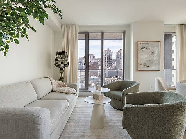 Exceptional corner unit at the Gatsby Condos, combining contemporary design, breathtaking views, and urban living in downtown Montréal.