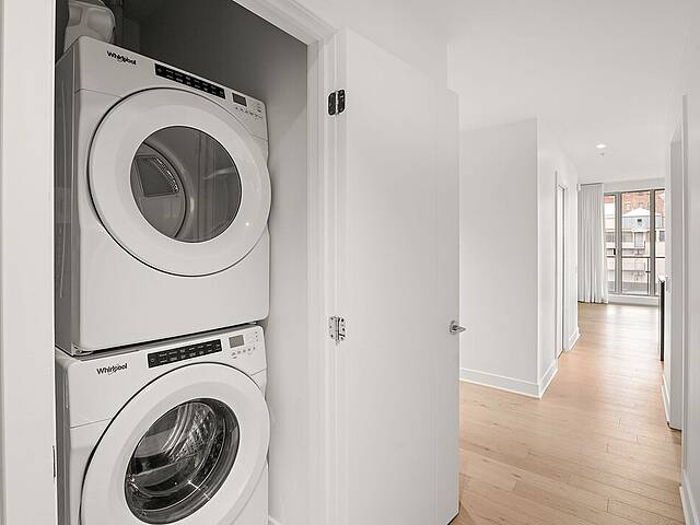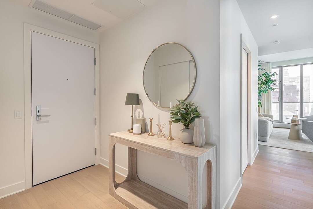 ADJUSTED PRICE -- Stunning new and modern corner unit located in the heart of downtown Montréal, featuring an open-concept living area, 2 bedrooms, 1 bathroom, 1 powder room, and a laundry area. Thanks to its large windows, enjoy breathtaking views of the city. The Gatsby Condos, a newly built project with a refined design inspired by the Roaring Twenties, showcases a unique and elegant architectural style. Enjoy an exceptional urban lifestyle with premium amenities, including a swimming pool and fitness centre.