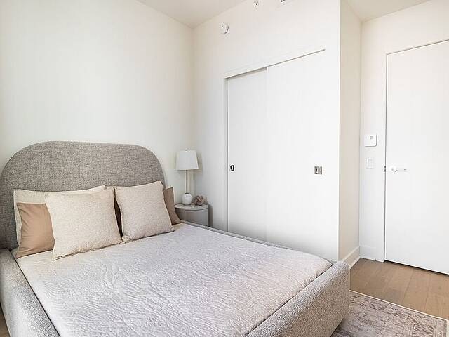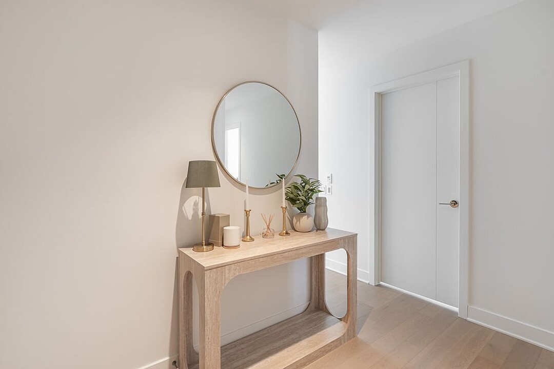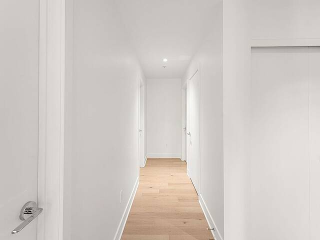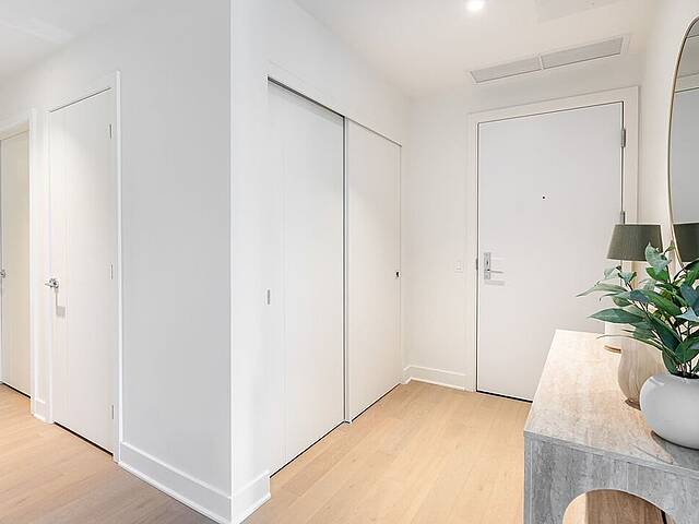 Units: -Dekton countertops and backsplash -9-foot ceiling height, primarily in living spaces -Quality acoustic soundproofing -Double-energy glazed windows with sealed units, low-e, and argon -Air exchanger included in each unit -Concealed air conditioning with roof condensers for 1 to 3-bedroom units -Architectural electric baseboard heating connected to digital thermostat -Pre-wiring for telephone, cable, and internet -Included lighting fixtures: recessed in the kitchen, entrance hall and bathrooms; functional lighting for laundry rooms and walk-ins -Gypsum-covered concrete columns -Condo delivered with 2 coats of white paint -Private balconies with glass railings for most units -Secure lock with Medeco key
