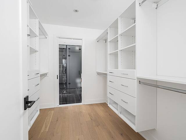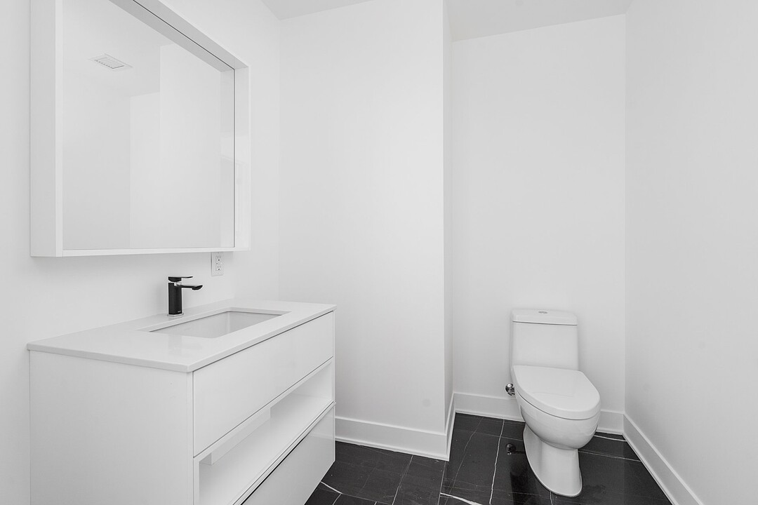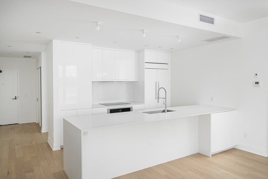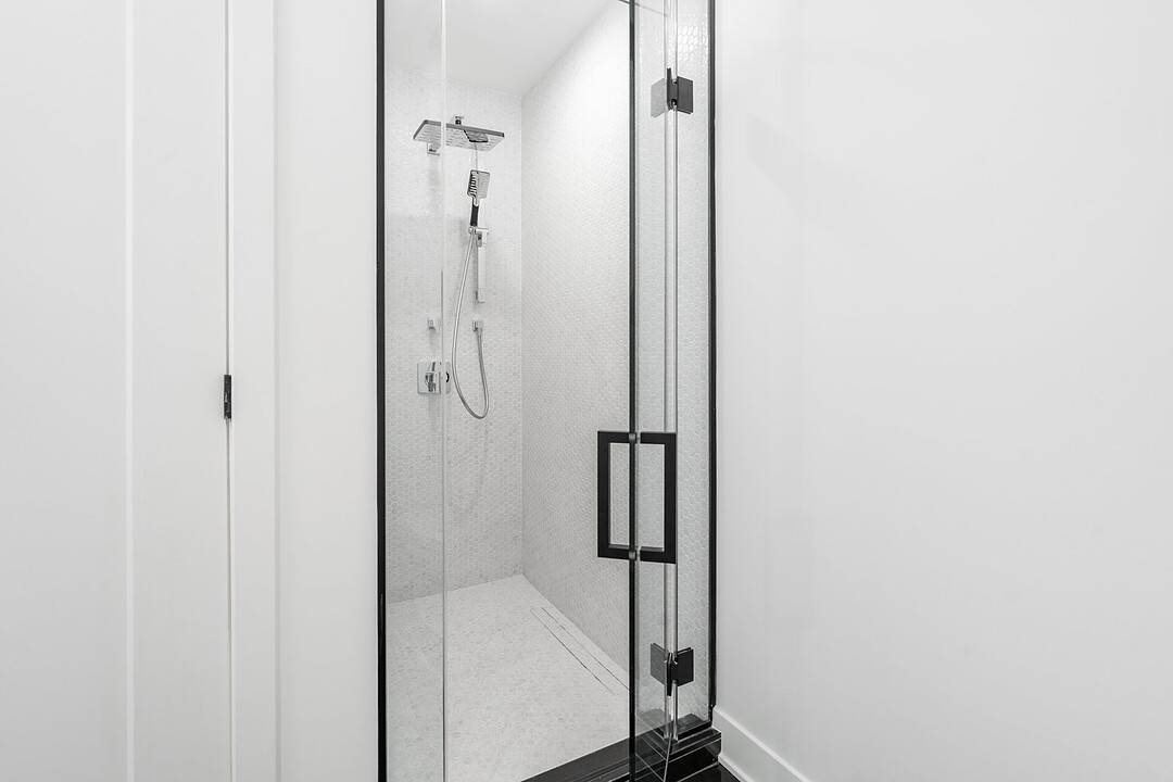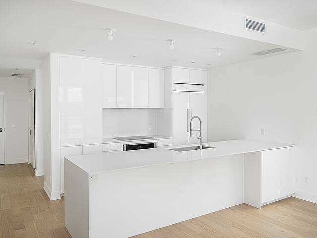 -Modern kitchen with quartz countertops, central island with high-end fixtures -Living room with floor-to-ceiling windows, and access to balcony -Master bedroom with a large walk-in closet and en-suite bathroom, featuring a spacious glass shower and freestanding bathtub. Heated flooring. -Second spacious bedroom suitable for use as an office -Second bathroom equipped with a shower and heated flooring -Powder room for guests -Quality appliances and high-end finishes -Breathtaking view of the Saint Lawrence River -Balcony -Laundry room -Natural gas outlet on balcony (BBQ)