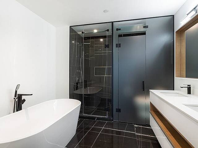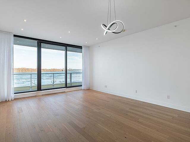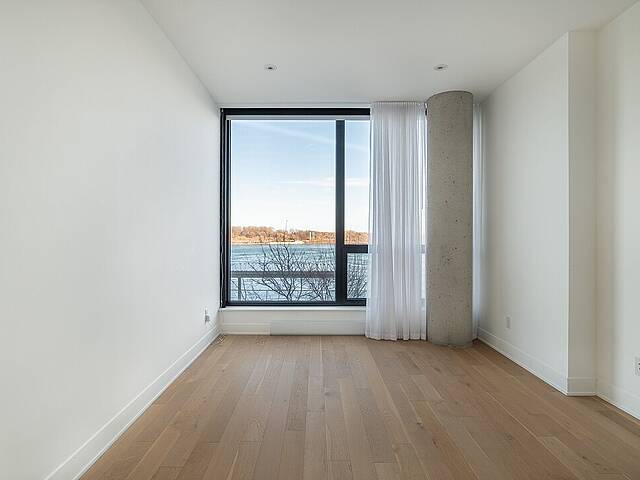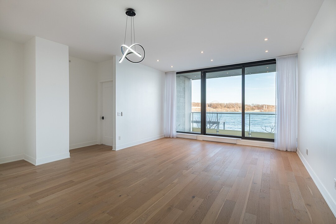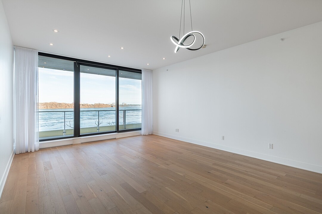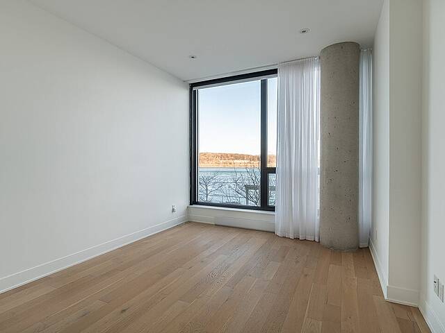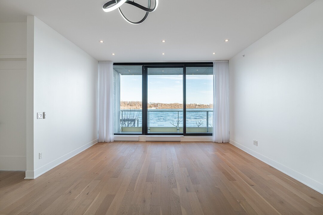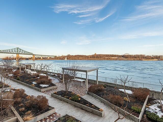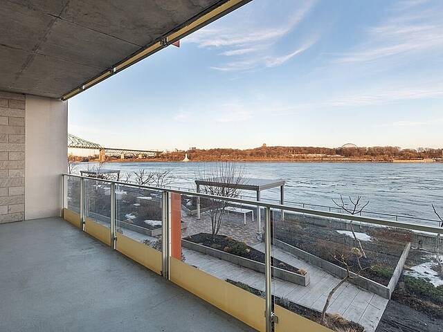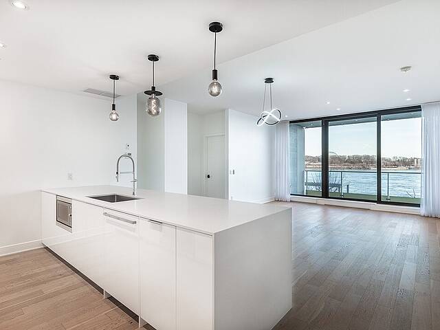 -Modern kitchen with quartz countertops, central island with high-end fixtures -Living room with floor-to-ceiling windows, and access to balcony -Master bedroom with a large walk-in closet and en-suite bathroom, featuring a spacious glass shower and freestanding bathtub. Heated flooring. -Second spacious bedroom suitable for use as an office -Second bathroom equipped with a shower and heated flooring -Powder room for guests -Quality appliances and high-end finishes -Breathtaking view of the Saint Lawrence River -Balcony -Laundry room -Natural gas outlet on balcony (BBQ) -One indoor parking space -One storage space