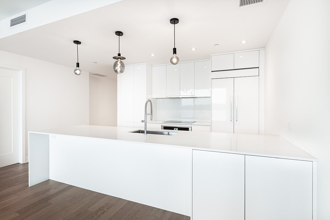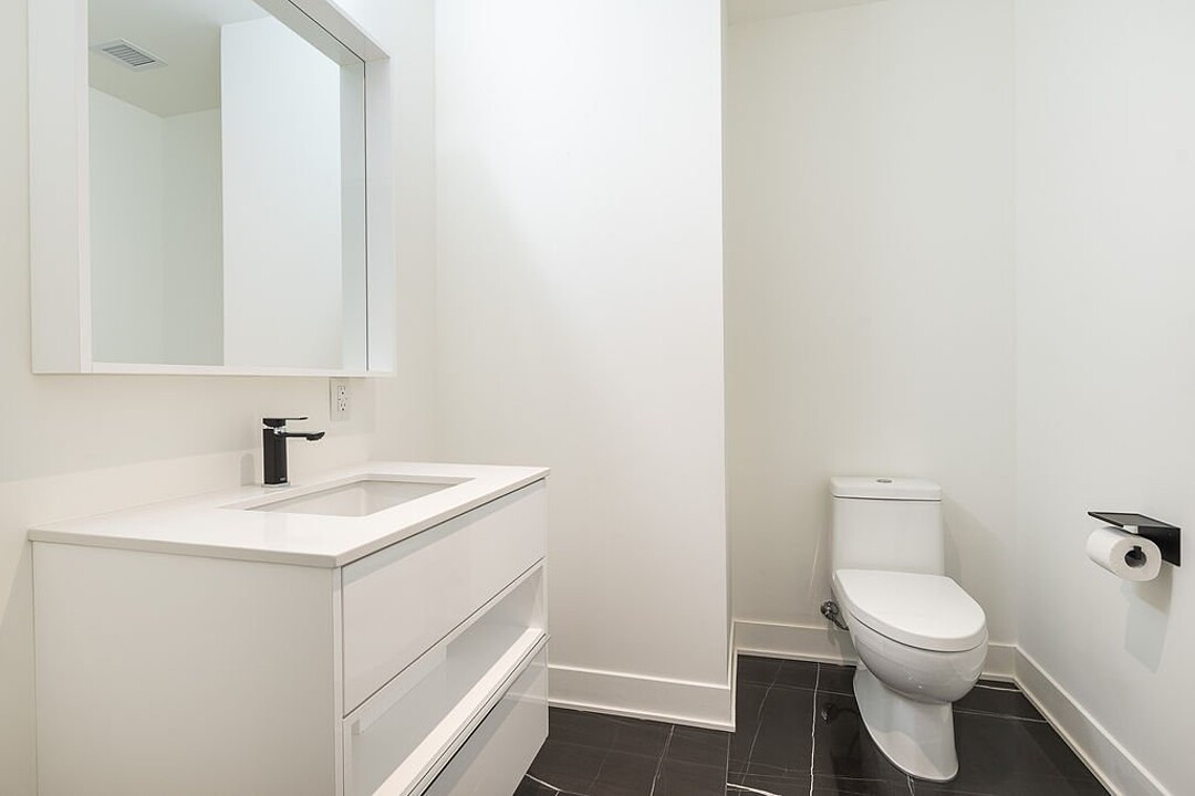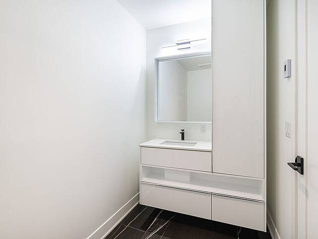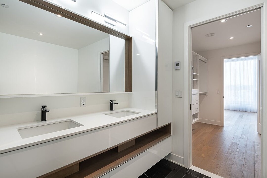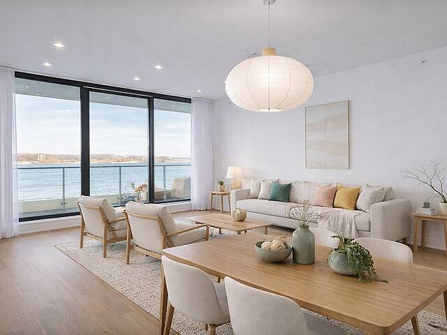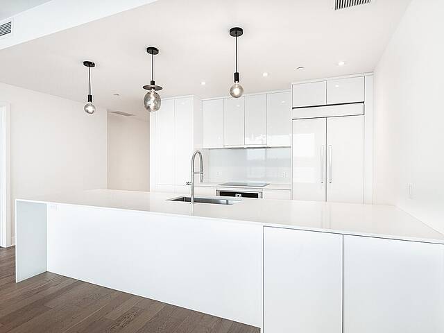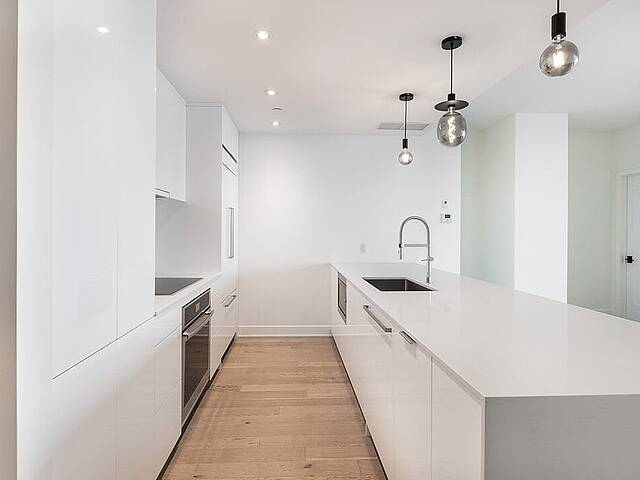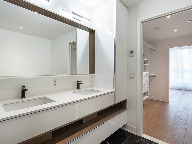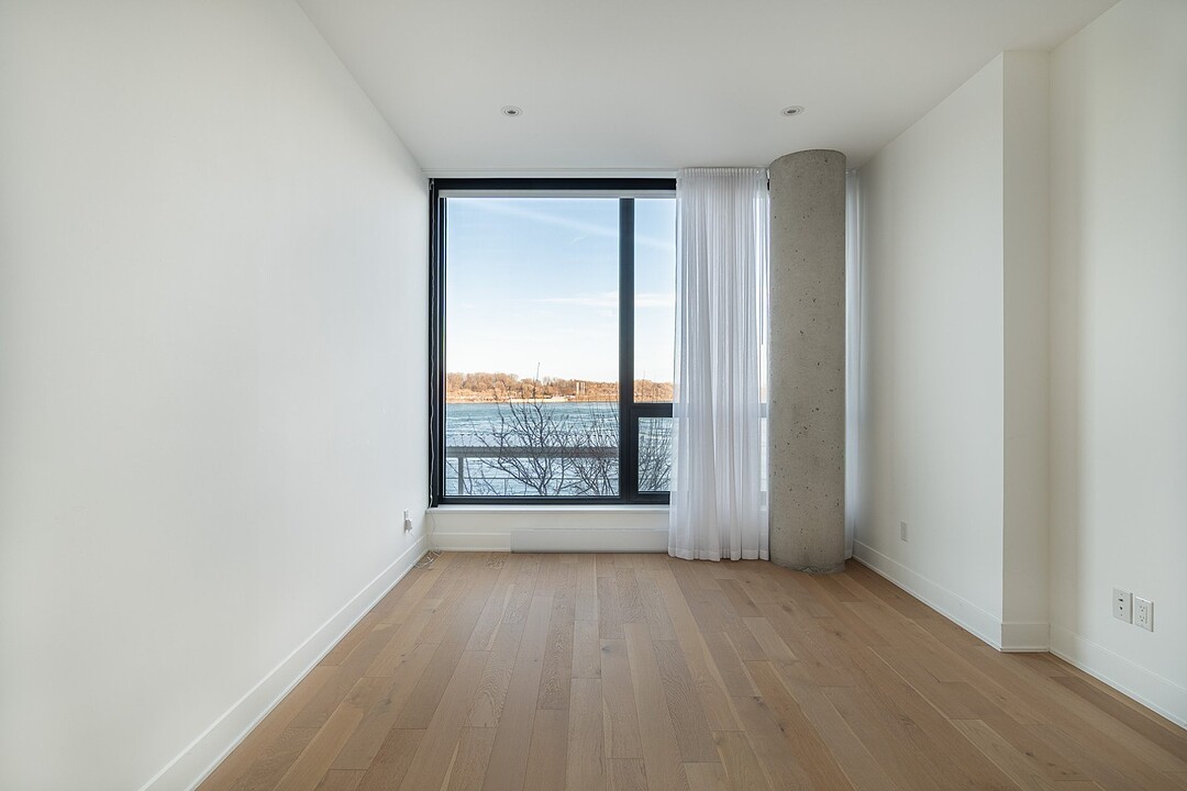 -Modern kitchen with quartz countertops, central island with high-end fixtures -Living room with floor-to-ceiling windows, and access to balcony -Master bedroom with a large walk-in closet and en-suite bathroom, featuring a spacious glass shower and freestanding bathtub. Heated flooring. -Second spacious bedroom suitable for use as an office -Second bathroom equipped with a shower and heated flooring -Powder room for guests -Quality appliances and high-end finishes -Breathtaking view of the Saint Lawrence River -Balcony -Laundry room -Natural gas outlet on balcony (BBQ) -One indoor parking space -One storage space